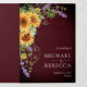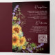 Convite Com Dobra Tripla Lavanda Girassóis Borgonha Código QR Casamento