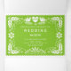 O papel verde picado ama pássaros três vezes o convite de fiesta de casamento. Essa natureza inspirou o estilo popular mexicano convite de casamento floral mostra dois pássaros brancos e um coração de amor com a palavra amor, assim como flores, folhas e pequenos pontos no verde limão.