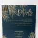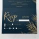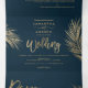 Novo convite para três vezes Palmeira de ouro moderna, palmeira elegante azul marinho de casamento, perfeito para casamento elegante tropical, luxuoso, adicione sua foto, detalhes de casamento e rsvp.