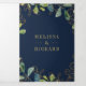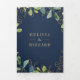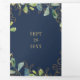 Convite Com Dobra Tripla Marinho Azul Dourado Eucalyptus Wreath QR Code Cas