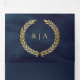 Convite Com Dobra Tripla Marinho Azul Dourado Laurel Mínimo Tudo em Um Casa