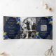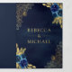 Convite Com Dobra Tripla Marinho Azul Floral Dourado Local Código QR Casame