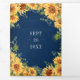 Convite Com Dobra Tripla Marinho Azul Girassóis Mason Jar Código QR Casamen