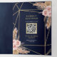 Convite Com Dobra Tripla Marinho Azul Pampas Rosas Rosa Pintadas Rosas Rosa