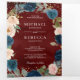Convite Com Dobra Tripla Marinho azul Pêssego Floral Código QR Casamento