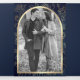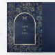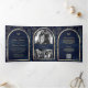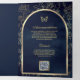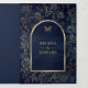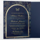 Convite Com Dobra Tripla Marinho Blue Line Art Dourado Arch Butterfly Casam