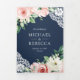 Convite Com Dobra Tripla Marinho Floral Rustic Peach Blue Código QR Casamen