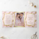 Convite Com Dobra Tripla Mármore Rosa Bege Fotografia Folha Dourada Falsa C