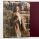 Convite Com Dobra Tripla Minimalist Photo Burgundy Gold QR Code Wedding