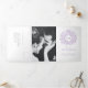 Convite Com Dobra Tripla Monograma de folhas roxas brancas casamento tudo e