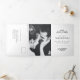 O casamento de arte botânica em folha, feita a preto e branco, com convites multifunções feitos a mão, com duas fotos. Personalize este convite de casamento para resposta destacável e dissimulável com os seus próprios detalhes da cerimônia de casamento, agenda, alojamento e outras informações, assim como opções de refeições, pedidos de música, respostas e duas das suas fotografias de casais favoritas. Simples design de folha, circulando suas próprias iniciais de monograma do coração. Outras cores e itens de casamento correspondentes estão disponíveis. © Desenho original em folha e design por Sarah Trett para www.mylittleedenweddings.com no Zazzle.