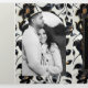 Convite Com Dobra Tripla Noiva Floral Preto e Dourado Bege