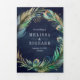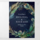 Convite Com Dobra Tripla Pacock Floral Feather QR Code Marinho Blue Weding