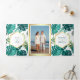 Convite Com Dobra Tripla Palma Tropical de Teal Branco Monstera Deixa Casam