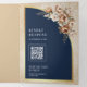 Convite Com Dobra Tripla Pampas Neutral Beige Earthy Floral Navy Wedding