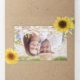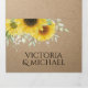 Convites de casamento de girassol de aquarela em papel kraft rústico, tudo em um único tri-painel que vem com cartões de resposta RSVP, detalhes e informações e uma foto do casal. Apresenta buquês de girassóis amarelos em um fundo de papel kraft falso. Perfeito para um casamento ao ar livre, boho, country ou natureza!
