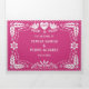 O papel rosa quente picado ama pássaros três vezes o convite de fiesta de casamento. Essa natureza inspirou o convite de casamento floral do estilo popular mexicano, que inclui dois pássaros apaixonados e um coração de amor com a palavra amor, assim como flores, folhas e pequenos pontos em fundo rosa-quente.