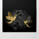 Joias pretas e douradas, beija-flores, sobre fundo de cinza decorado com plantas. Pássaros joalharia. Pássaro ouro. Pássaro Dourado.