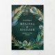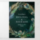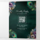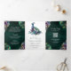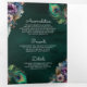 Convite Com Dobra Tripla Peacock Floral Feather QR Code Emerald Wedding