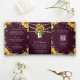 Convite Com Dobra Tripla Plum Purple Sunflower Mason Jar Código QR Casament