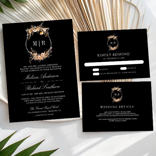 Fall Wildflower Crest Black Wedding Criado por Shabbir D