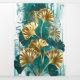 Ramificação com joias, ouro e folhas verdes de Ginko biloba à luz, pintada de fundo verde. Ginko biloba