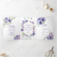 Convite Com Dobra Tripla Rosas Roxos Disies Hydrangeas Casamento