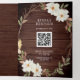 Convite Com Dobra Tripla Rustic Barn Wood Magnolia Floral Código QR Casamen