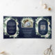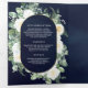 Convite Com Dobra Tripla Rustic Greenery Ivory Floral Marinho Código QR Cas