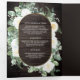 Convite Com Dobra Tripla Rustic Wood Greenery Ivory Floral Código QR Casame