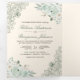 Convite Com Dobra Tripla Sage Green Rosas Lace Floral Cream Código QR Casam