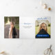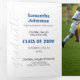 Um script elegante anuncia seu graduado sobre sua foto de senior favorita na frente. Bloco para o nome deles na frente, e todos os detalhes da cerimônia dentro, juntamente com mais duas fotos. Espaço na parte de trás para uma mensagem de agradecimento aos amigos e familiares. Design disponível nas cores escolares vermelho, laranja, roxo, verde, azul, laranja queimado e vinho. Produtos combinando disponíveis.
