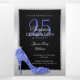 Bonito convite de aniversário surpresa para 25 de Foto, prateado e preto, com código QR para respostas/informações rápidas e fáceis. Um bonito convite para comemorar vinte e cinco anos. Uma armação glamourosa de diamante prateado em um fundo preto e prateado inventa seus detalhes do evento. Com imagens adicionadas de cordas na moda glitzy e um calçado de joias de rochonete estilete a alto salto. Todo texto é totalmente personalizável para atender às suas necessidades. Se você quiser ajuda com alguma coisa, por favor, entre em contato comigo através da minha loja e eu ficarei muito feliz em ajudá-lo. Seu código QR será gerado automaticamente para atualizar o código de exemplo no design, quando você simplesmente alterar o URL de exemplo no modelo com o URL do seu próprio site de eventos. Encomenda cada convite separadamente se desejar utilizar esta opção de personalização de cada convite com o nome e o endereço de seus destinatários para salvá-los. DICA: preencha primeiro os restantes detalhes do convite e, em seguida, coloque o nome do primeiro destinatário e os detalhes do endereço aqui. Depois de adicionar seu primeiro convite ao carrinho, você pode clicar na imagem dele no carrinho, que o levará de volta ao produto e, em seguida, simplesmente adicionará o nome e o endereço do próximo destinatário. Não vai substituir os anteriores já no seu carrinho. OBSERVE que você pode excluir este texto se preferir fazer o pedido em massa e adicionar o nome do destinatário e os detalhes do endereço no recebimento.