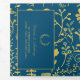 Convite Com Dobra Tripla Suíte de Casamento Floral Dourado e Azul Elegante