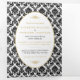 Convite Com Dobra Tripla Suite de Casamentos tema damasco Dourado, preto e