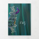 O convite de casamento Elegante triplo feito em um olhar teal, com gráficos de prata florescente e um pavão colorido, na frente. A dentro central apresenta uma faixa de fotos personalizada para a foto da noiva e do noivo e a frente do convite tem os monogramas da noiva e do noivo. Personalize todas as áreas de texto com suas informações de casamento.