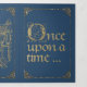Esse convite de festas encantador e elegante apresenta um fundo azul marinho e um tema de conto de fadas caprichoso, impresso num design dourado. Uma banda esmaecida de relógios aparece na parte superior. Um castelo aparece à direita e uma carruagem desenhada a cavalo com folhas caídas aparece no fundo à esquerda. O texto na frente diz, "Era uma vez..." para se parecer com um conto de fadas, e é escrito em uma elegante fonte design de brilho dourado.