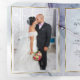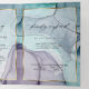 Salpico etéreo de manchas de tinta alcoólica em tons de azul oceano, verde-azulado e roxo âmbar rico - cada seção destacada com uma sobreposição emoldurada em ouro branco transparente, na parte central frontal está sua foto acentuada com uma moldura dupla dourada e por trás da sobreposição branca translúcida para um apelo esotérico - dentro da capa há uma segunda foto de sua escolha - o convite de casamento é central e o RSVP destacável está na última seção. Este convite é projetado para ser usado com um envelope de envio devido à foto externa no centro - Este lindo design abstrato moderno é perfeito para um convite de casamento tudo-em-um completo com RSVP de escolha de refeição pré-endereçado destacável para seus convidados enviarem facilmente de volta - um convite de casamento tudo-em-um deslumbrante -