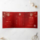 Convite Com Dobra Tripla Vermelha Dourada Magnolia | Casamento Chinês