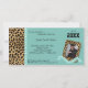 Pérolas azuis-esverdeadas com impressão de leopardo simulada em preto e bege decoram este anúncio contemporâneo para todas as ocasiões. Faça o upload de sua própria foto para a moldura de leopardo descolada para personalizar ainda mais a aparência deste design luxuoso. Há muito texto personalizável para adicionar as informações da sua festa. Nós também temos este design em várias cores, juntamente com adesivos, convites e etiquetas de endereço correspondentes. Embora seja apresentado como um convite de festa de formatura, como o texto é completamente personalizável, este design eclético é perfeito para quase qualquer ocasião! Se em algum momento você precisar de ajuda para personalizar este produto, por favor, sinta-se à vontade para nos contatar e ficaremos felizes em ajudar! Como sempre, não há nenhum custo adicional para este serviço personalizado.