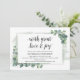 Greenery Eucalyptus, na noite anterior, Janto de ensaio de casamento Cartão. Planejar uma celebração do Janto de ensaio do casamento com a futura noiva e futura noiva, antes do seu grande dia? Convide os convidados com este Cartão de Convite para Janto de Ensaio de Casamento Russo. Adicione os detalhes do janto de ensaio em caracteres pretos / letras correspondentes. #TeeshaDerrick