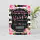 Este convite de listras pretas e brancas florais é completamente personalizável para qualquer evento. Este convite está atualmente configurado para ser um convite de aniversário elegante com listras pretas e brancas, detalhes florais rosa e detalhes de brilho dourado falso. Certifique-se de selecionar personalizar ainda mais se desejar usar isso para outro evento para acessar o modelo completamente personalizável. Este convite é popular para aniversários, chá de noiva, despedidas de solteira e muito mais!