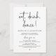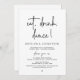 Anuncie a sua alegria para sempre em estilo com a nossa carta de convite para celebração de celebração de casamento com o nosso moderno roteiro casual design. O nosso cartão de convite Feliz para Depois (Coma, Beba, Dança!) é ideal para casais que decidiram fugir e querem receber uma festa para celebrar o seu sindicato. Com seu design sofisticado, mas lúdico, este convite certamente define o tom de um evento inesquecível. O cartão de convite apresenta um design minimalista com um esquema preto e branco, adicionando um toque de elegância do eterno à sua celebração. Projetado por TeeshaDerrick