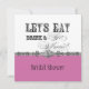 Procurando um chá de panela excelente? Fontes elegantes e divertidas anunciam a mensagem, "Vamos coma, beba e se case!" em um maravilhoso e caprichoso Concurso de Casamento. Em uma paleta de cores clara, nítida, rosada de mel, cinza, preta e branca, é a melhor de todas com uma reviravolta moderna. O lado da frente tem a mensagem e os seus nomes com a data do casamento. No verso estão dois ornamentos da impressora com uma letra elegante caligráfica manual e o texto "Celebrar conosco" em fontes exclusivas e divertidas juntamente com as informações de convite para o chá do seu casal. Há um conjunto completo de produtos disponíveis com este design e podemos fazer isso em qualquer combinação de cores que você desejar.