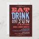 Convite Coma, beba e divirta-se em uma festa de CHURRASCO