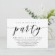 Cartão de convite de casamento íntimo temático de roteiro moderno (Coma, Beba e Festeje). É perfeito para a sua celebração casual de casamento íntimo à beira do lago.