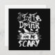Design humorístico apresentando a frase espirituosa "Coma, Beba E Seja Assustador" em tipografia preta e branca em negrito, adicionando um toque divertido às suas aventuras culinárias. Ideal para cozinhar, assar, grelhar ou organizar festas temáticas, tornando-se um ótimo complemento para sua cozinha ou um presente único para amigos e familiares.