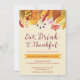 Convite Coma, Beba e seja Grato Festa de Folhas de Aquarel