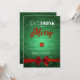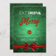 Festa Elegante de Natal / Festa de Férias / modelo de Convite de festas de inverno com a design de tipografia "Comer, Beber e Ser Feliz" e as luzes de bicos motif em verde. Excelente a ser usado para festas de janto Corporativo, bolas e galas de inverno, gravata negra / eventos e festas de escritório.