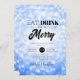 Festa Elegante de Natal / Festa de Férias / modelo de Convite de festas de inverno com a design de tipografia "Comer, Beber e Ser Feliz" e luzes de anzol motif em azul. Excelente a ser usado para festas de janto Corporativo, bolas e galas de inverno, gravata negra / eventos e festas de escritório.